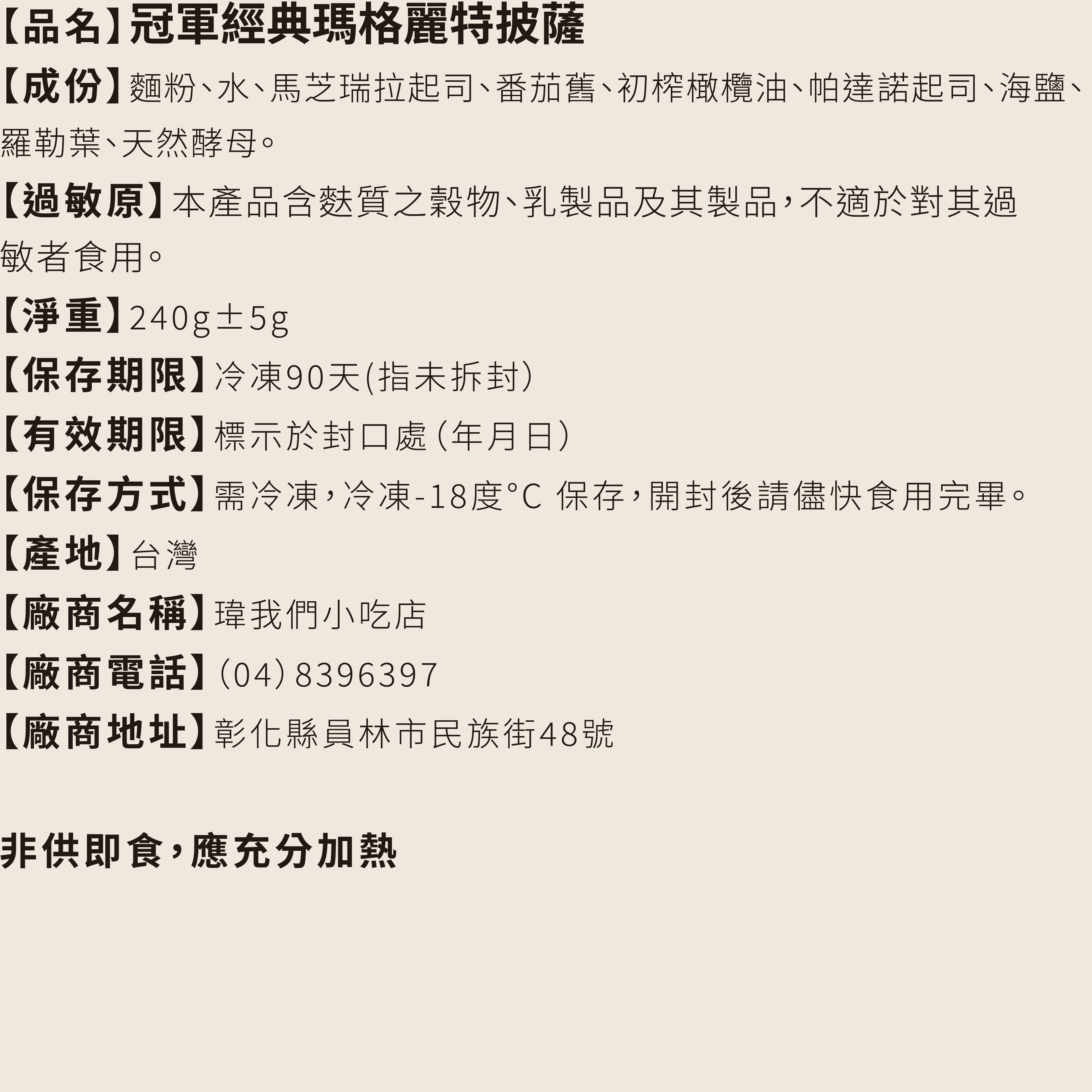 3.簡單加熱就能吃到受到義大利王后青睞的經典口味。